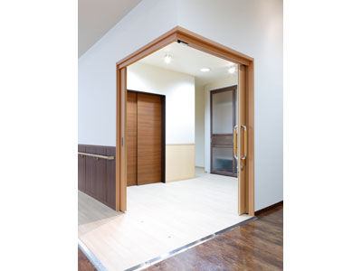 二枚連動引戸と片引戸の二面開口のL型ドア。